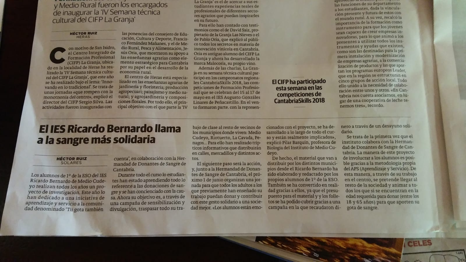 - Conseguir que el día 25 de mayo acuda el mayor número posible de personas a donar sangre en la unidad móvil que acudirá al IES Ricardo Bernardo de Medio Cudeyo. Nos gustaría que muchas de las personas que acudan ese día por primera vez a donar se convirtieran en donantes habituales.